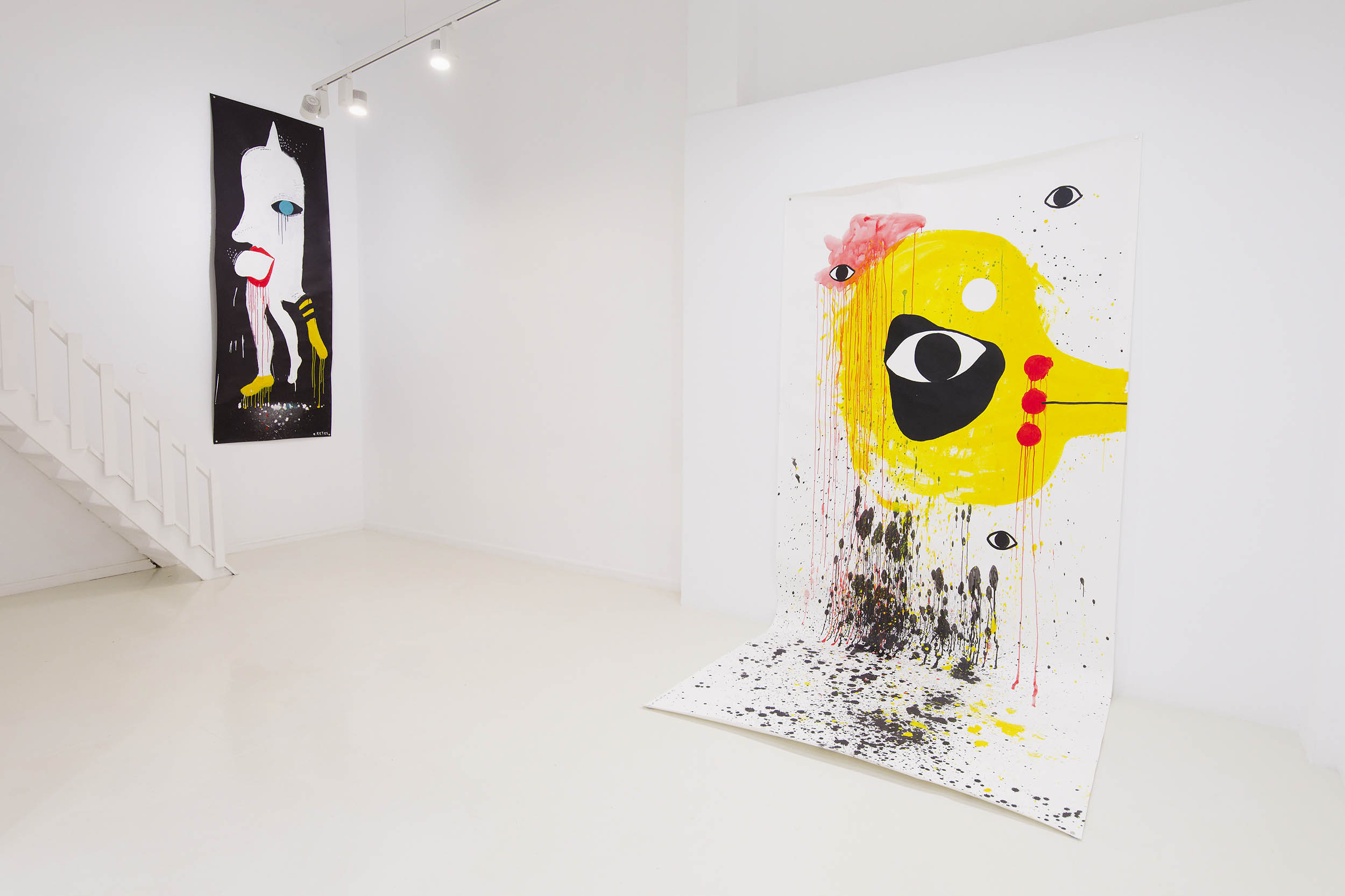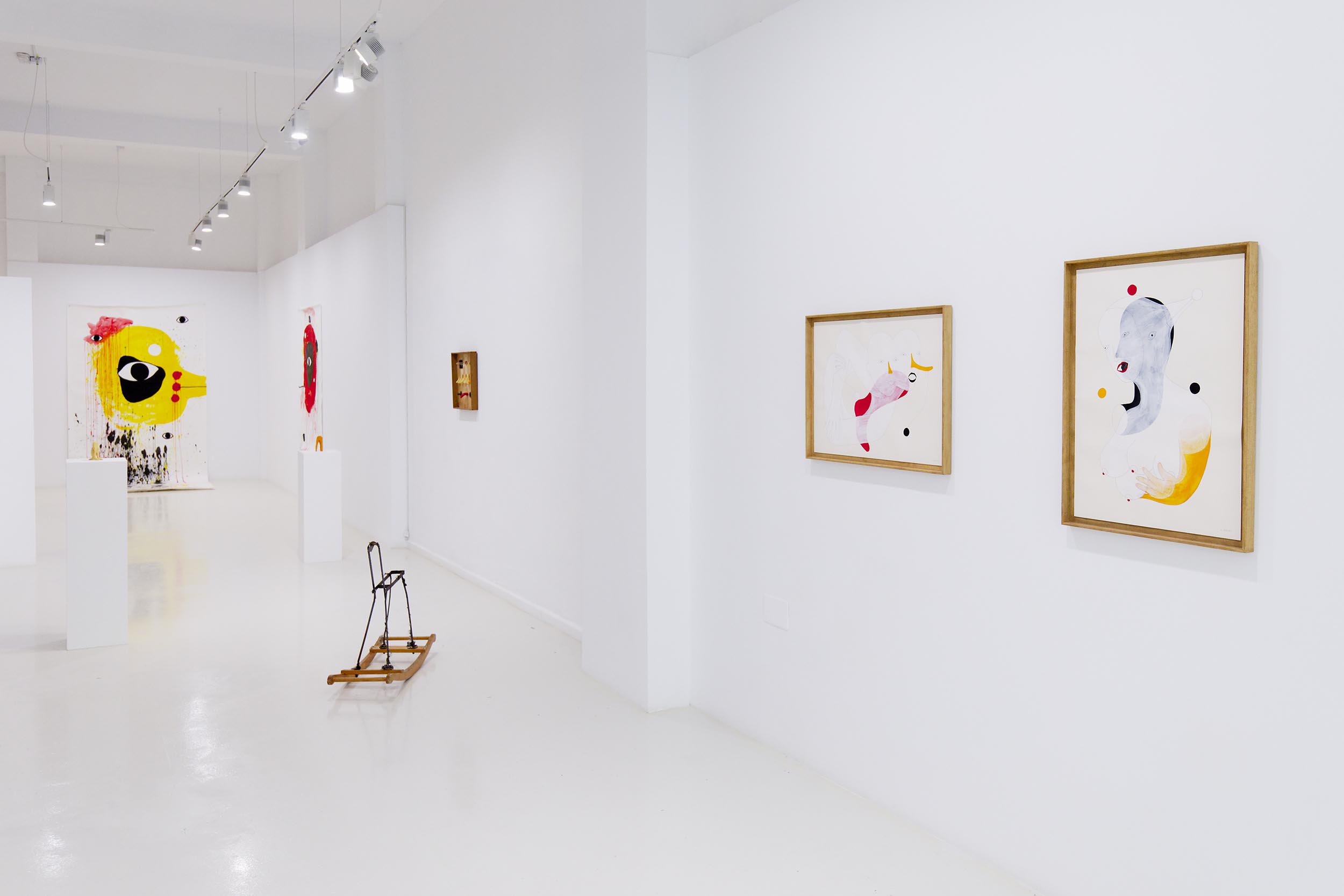 A solo exhibition at Galeria ATC in Santa Cruz de Tenerife showcasing a mix of large and medium-sized works on paper, assemblages of found objects and ceramics, video projections and live work in the gallery.